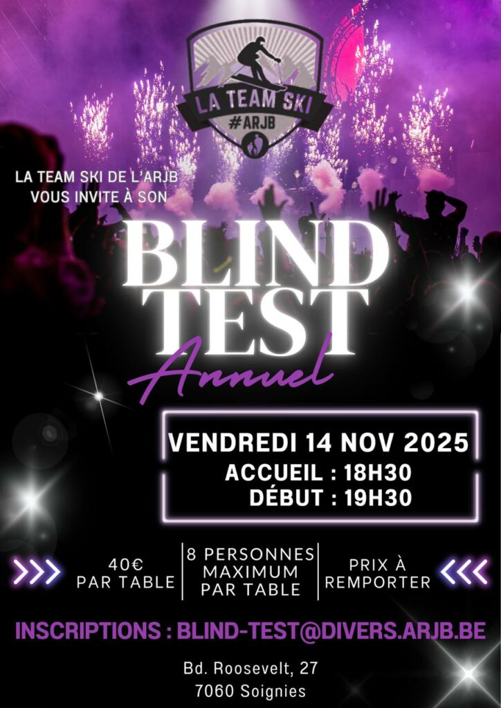 L’équipe organisatrice du traditionnel voyage de ski des élèves de 3èmes est heureuse de vous annoncer l’organisation d’une nouvelle soirée Blind test au sein de la salle des sports de l’implantation de Soignies le vendredi 14 novembre 2025.